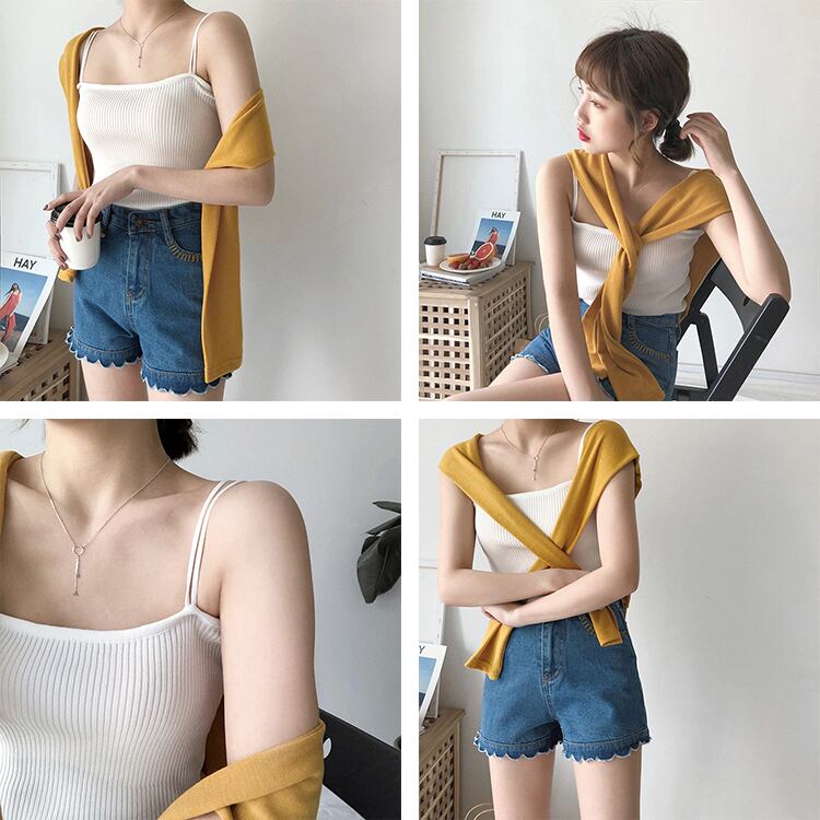 ダブルサスペンダーニットキャミソール キャミソール ショート 秋冬 レディース 韓国 8カラー a3490