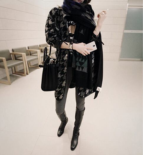 千鳥格子ウールコート ウールコート ジャケット コート アウター レディース ミドル丈 厚手 秋冬 チェック柄. a3572
