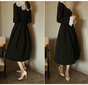フレンチワンピース ブラックワンピース ヘップバーンスタイル. ワンピース ドレス ミドル丈 花びらスリーブ. a3574