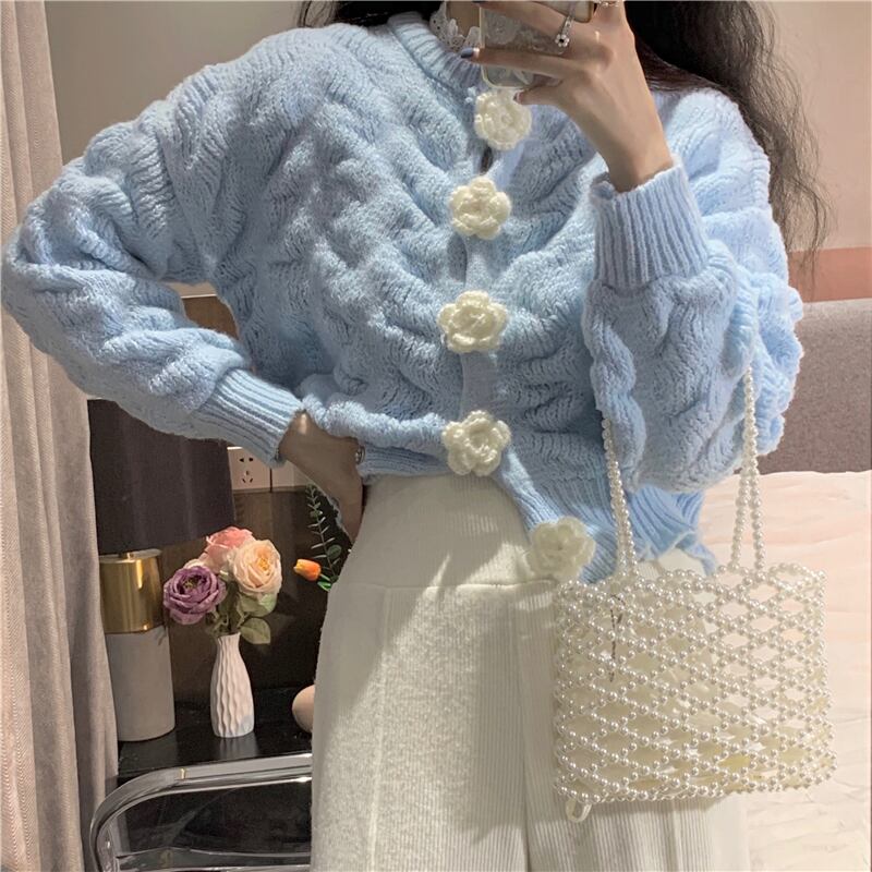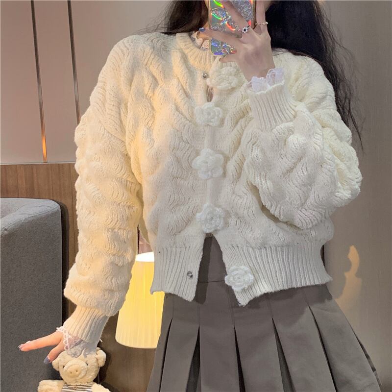 かぎ針編みニットカーディガン ニットカーディガン カーディガン 花柄ボタン ニット セーター レディース ショートコート a3578