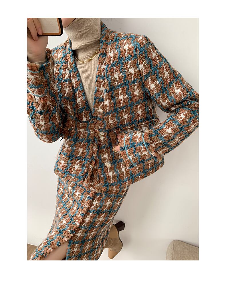 【セットアップ】ツイードジャケット+ツイードスカート ジャケット ハイウエスト ツーピース スーツ 上品 ツイード a3617