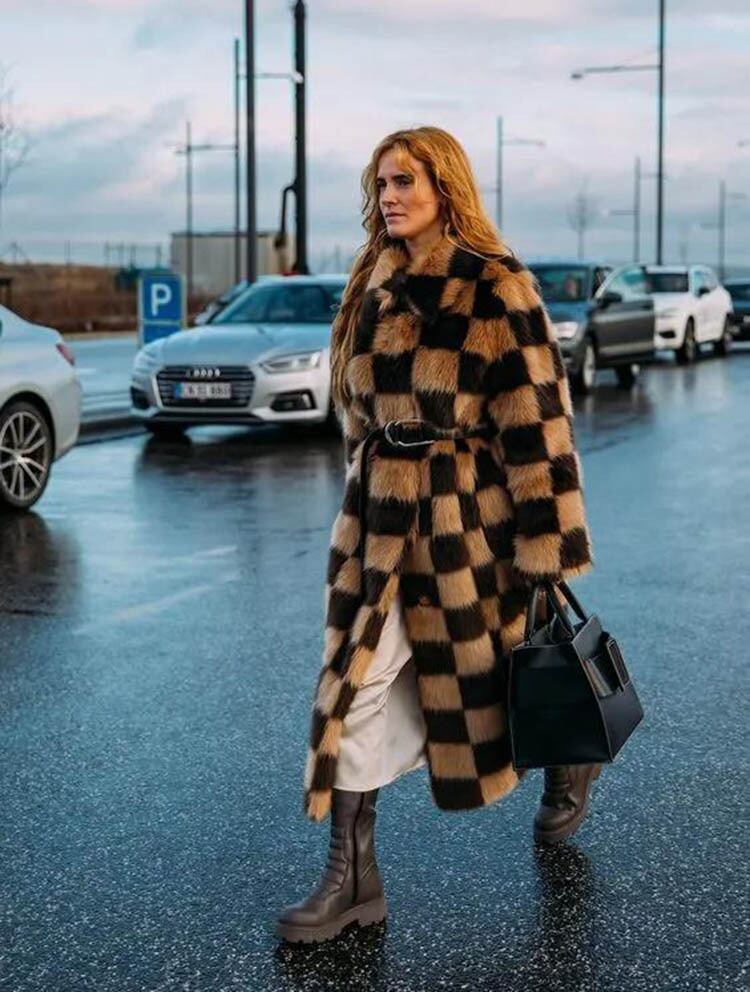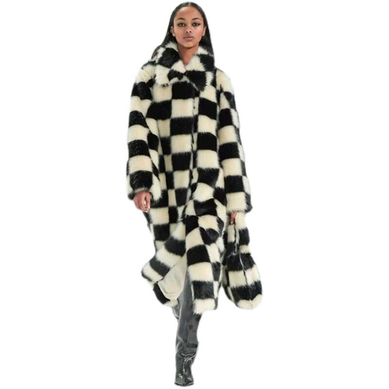チェッカーボード柄ファーコート ロングファーコート ファーコート 毛皮 コート ジャケット アウター ロング丈 クラシック レトロ. 2カラー a3720