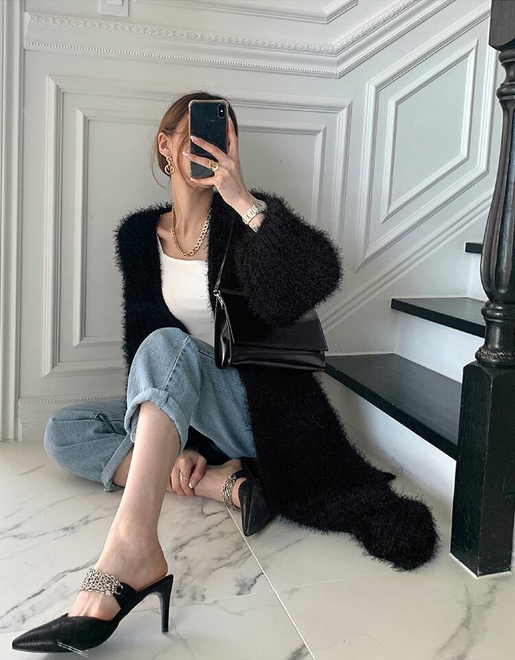 ふんわりモフモフ素材のカーディガンジャケットセーター