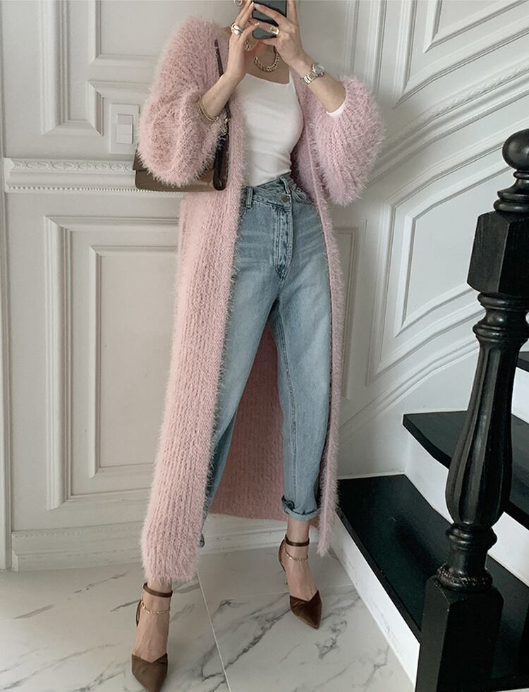 カーディガンジャケットセーター ウエストタイ カーディガン ジャケット シャギーファー 長袖 かわいい セーター. ニット 韓国 4カラー a3624