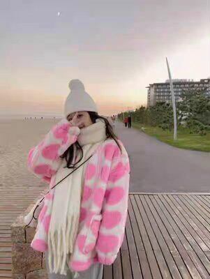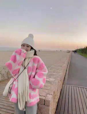 ハート柄ボアコート ボアコート. ボアジャケット ボア コート ジャケット アウター 厚手 ウールコート. ベルベット a3628