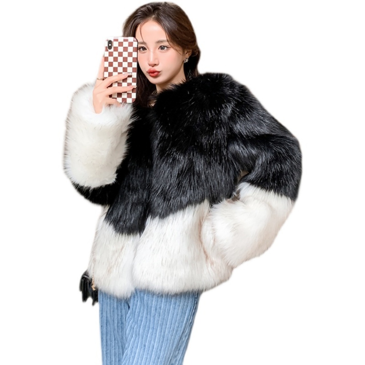 バイカラーファーコート ファーコート 毛皮コート ノーカラーコート ファー コート ジャケット アウター 毛皮 冬 ゴージャス a3834