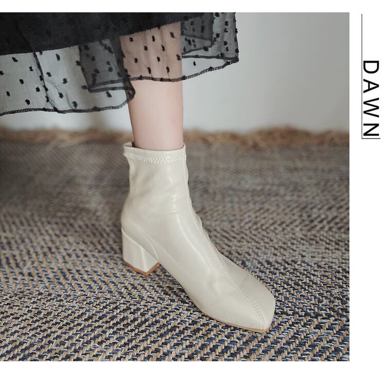 ストレッチレザーブーツ スクエアトゥ ストレッチ PU レザー ショート ブーツ レザーブーツ ショートブーツ ストレッチブーツ ブーツ 2カラー a3611