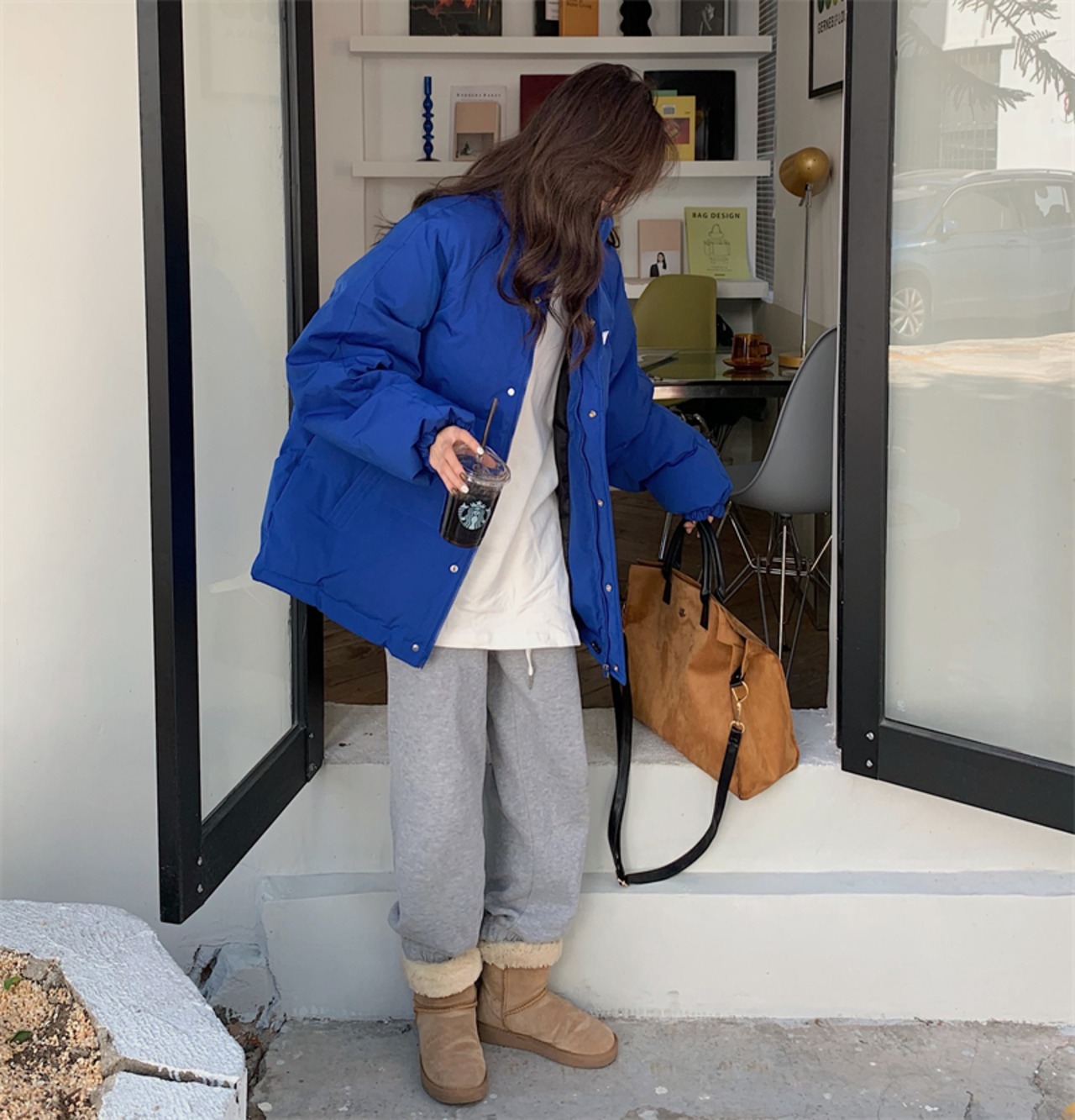 鮮やかなブルーが可愛いダウンジャケット