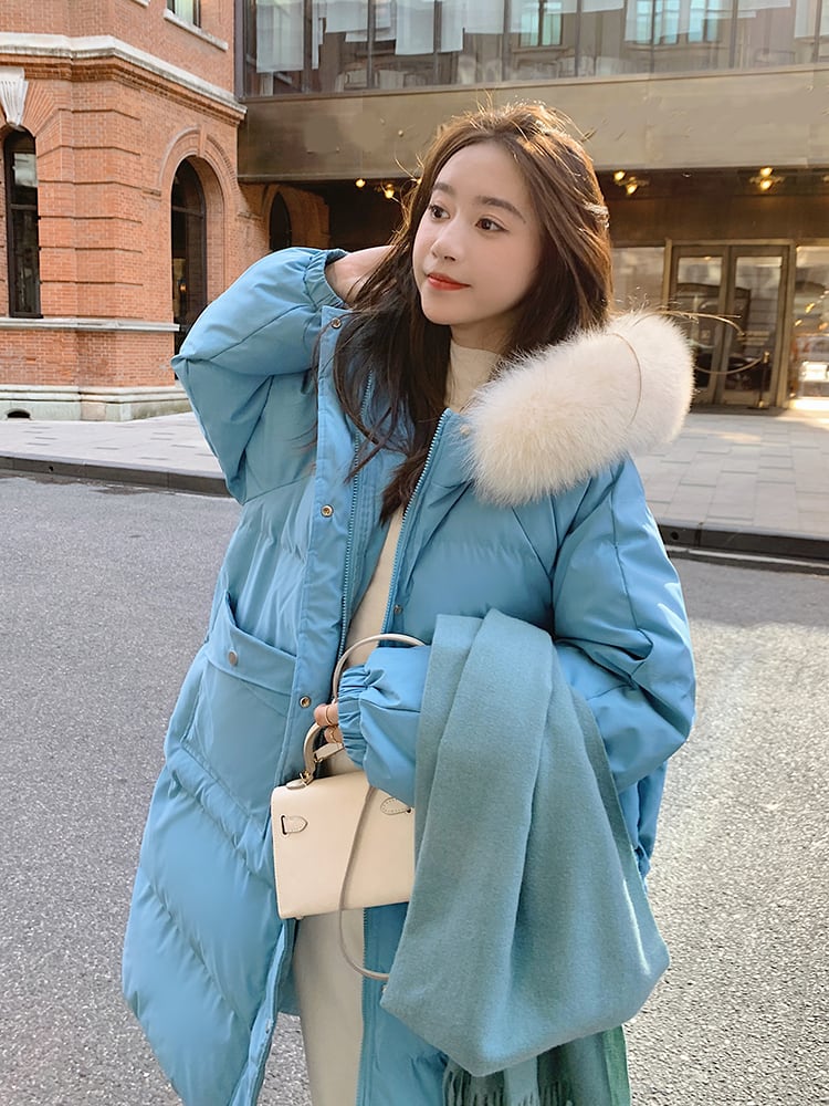 ファーフード付き ロングダウンジャケット ダウンコート ダウンジャケット コットンパッド入りジャケット ロング丈 ジャケット コート アウター 冬 a3726
