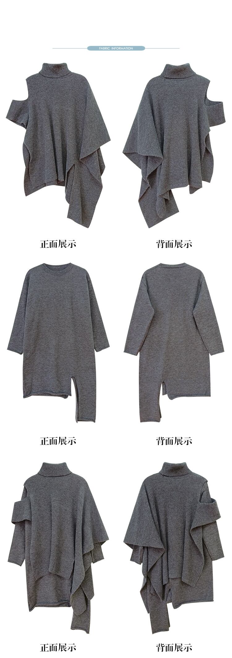 【セット】ニットワンピース+ハイカラーマントコート セットアップ ニットアップ スプリットドレス ルーズ ワンピース アウター 3カラー a3868