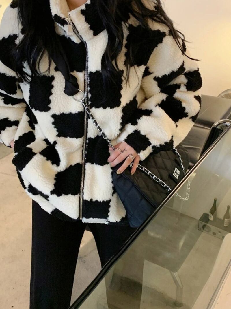 トレンドのチェッカーボード柄がとっても可愛いフリースジャケット