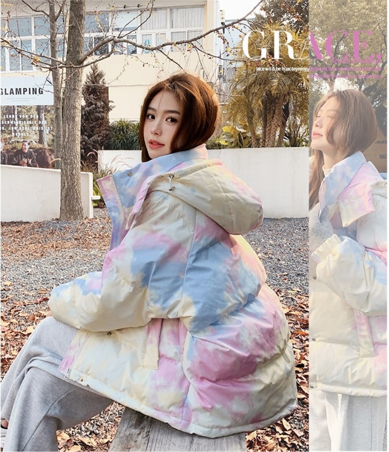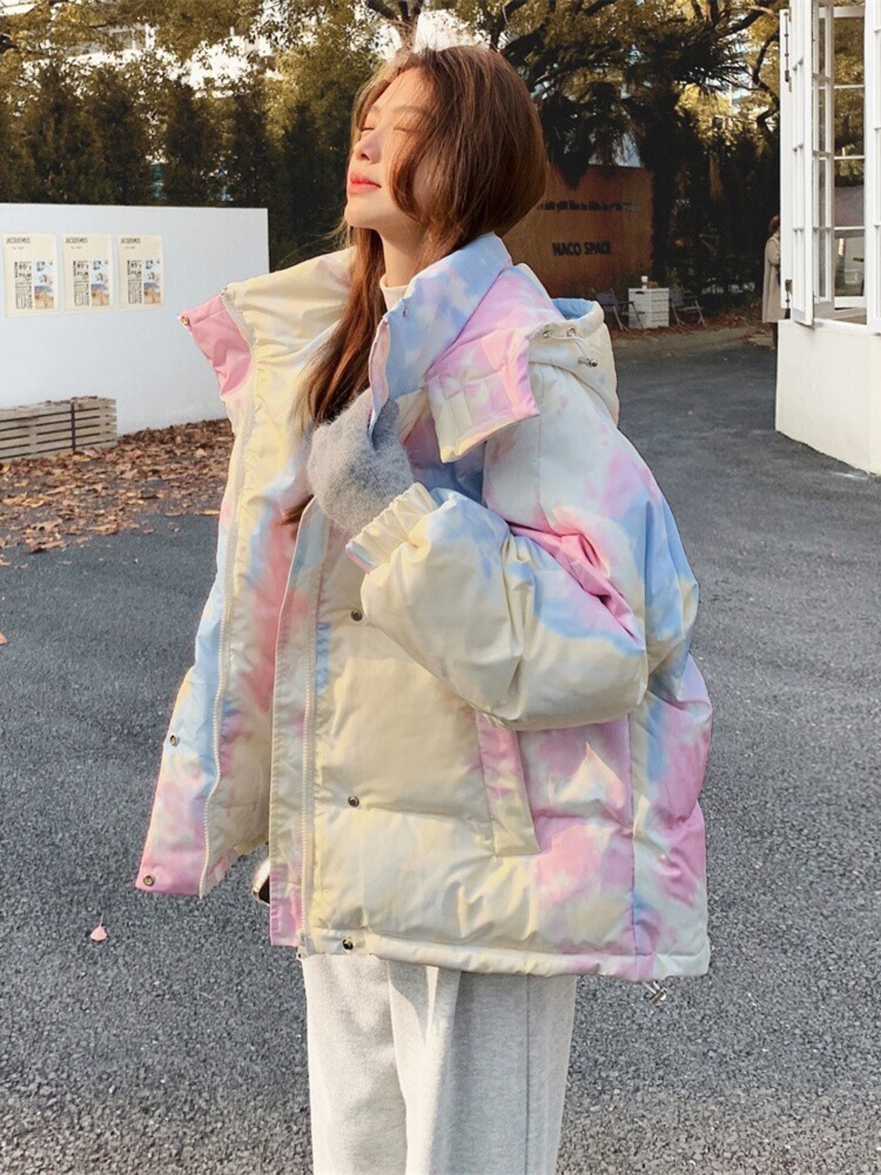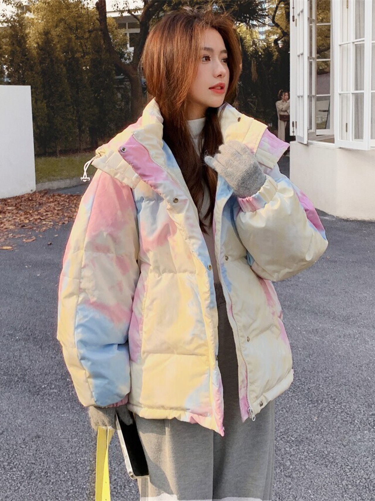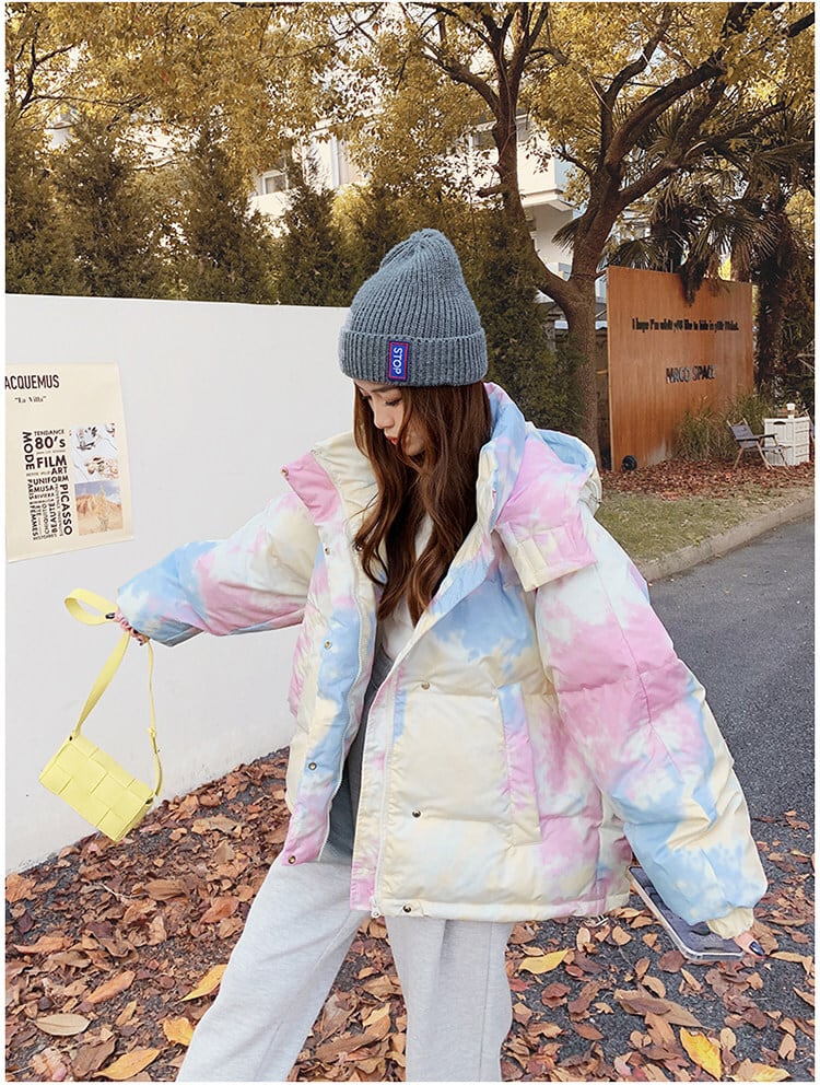 柔らかなレインボーカラーが可愛いダウンジャケット