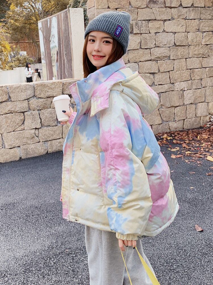 レインボーダウンジャケット ダウンコート コットンパッド入りジャケット ジャケット コート アウター 冬 a4011