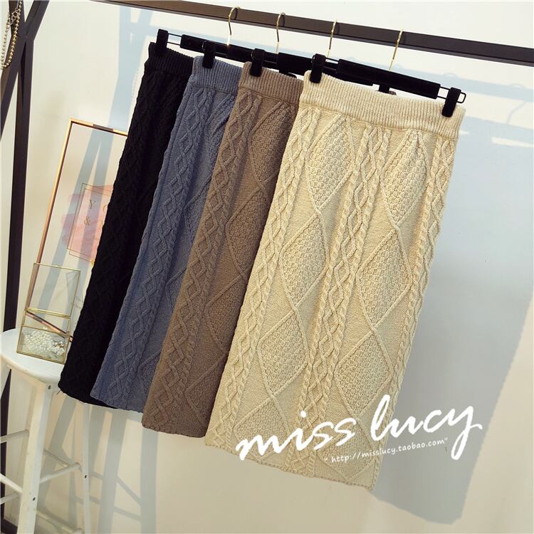 ツイストニットスカート ニットスカート ツイストニット スカート ハイウエスト ミドル丈 4カラー a4018