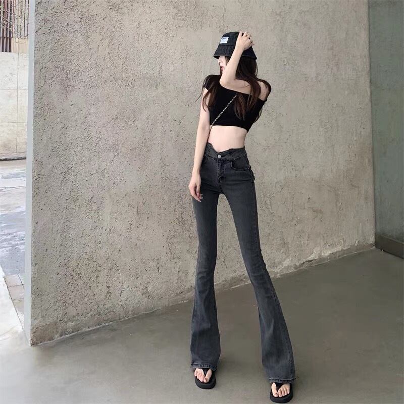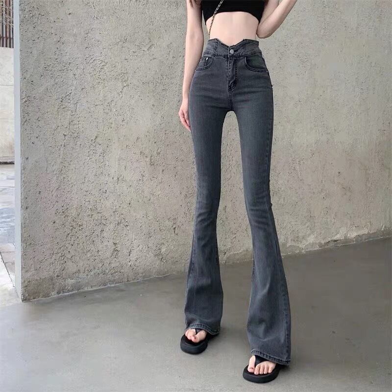 ストレッチブーツカットジーンズ ブーツカット ジーンズ デニム Vウエスト フレアパンツ ハイウエスト ドレープ スリム a3668