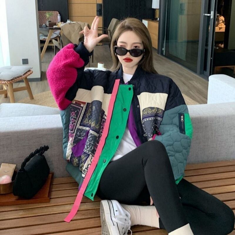 コントラストカラーブルゾンジャケット ジャンパー ブルゾン ジャケット コート アウター 秋冬 a3670