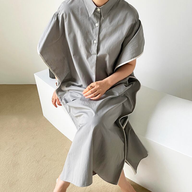 3ボタンシャツワンピース ワンピース Hライン プルオーバー 無地 おしゃれ レディース ゆったり カジュアルワンピース a3674
