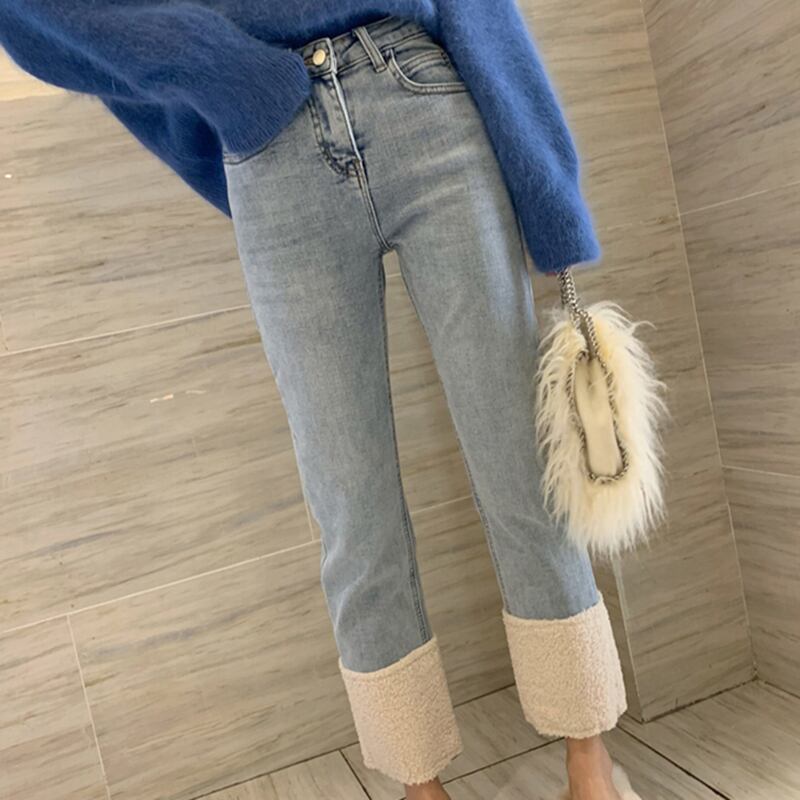 裾部分がボア生地になっていて可愛い9分丈デニム