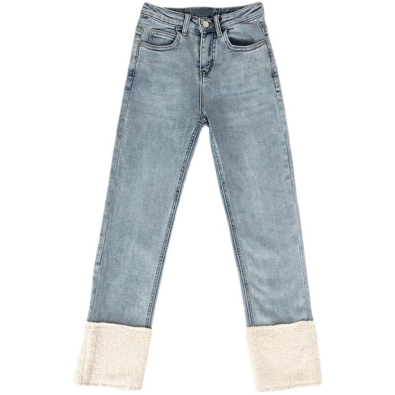 裾ボアデニム 9分丈. デニム ジーンズ ストレートジーンズ ハイウエスト スリムパンツ ボトムス a4008