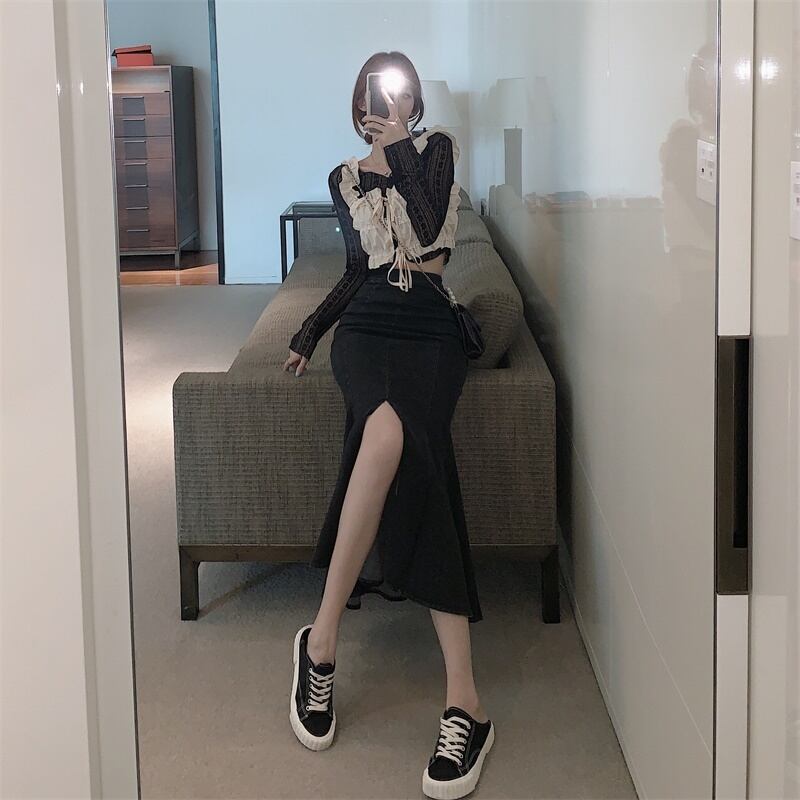 デニムマーメイドスカート マーメイド スカート デニムスカート ロング丈 スリット 春夏秋 タイトスカート ミモレ丈 ハイウエスト カジュアル 美脚 きれいめ レディース. a4009