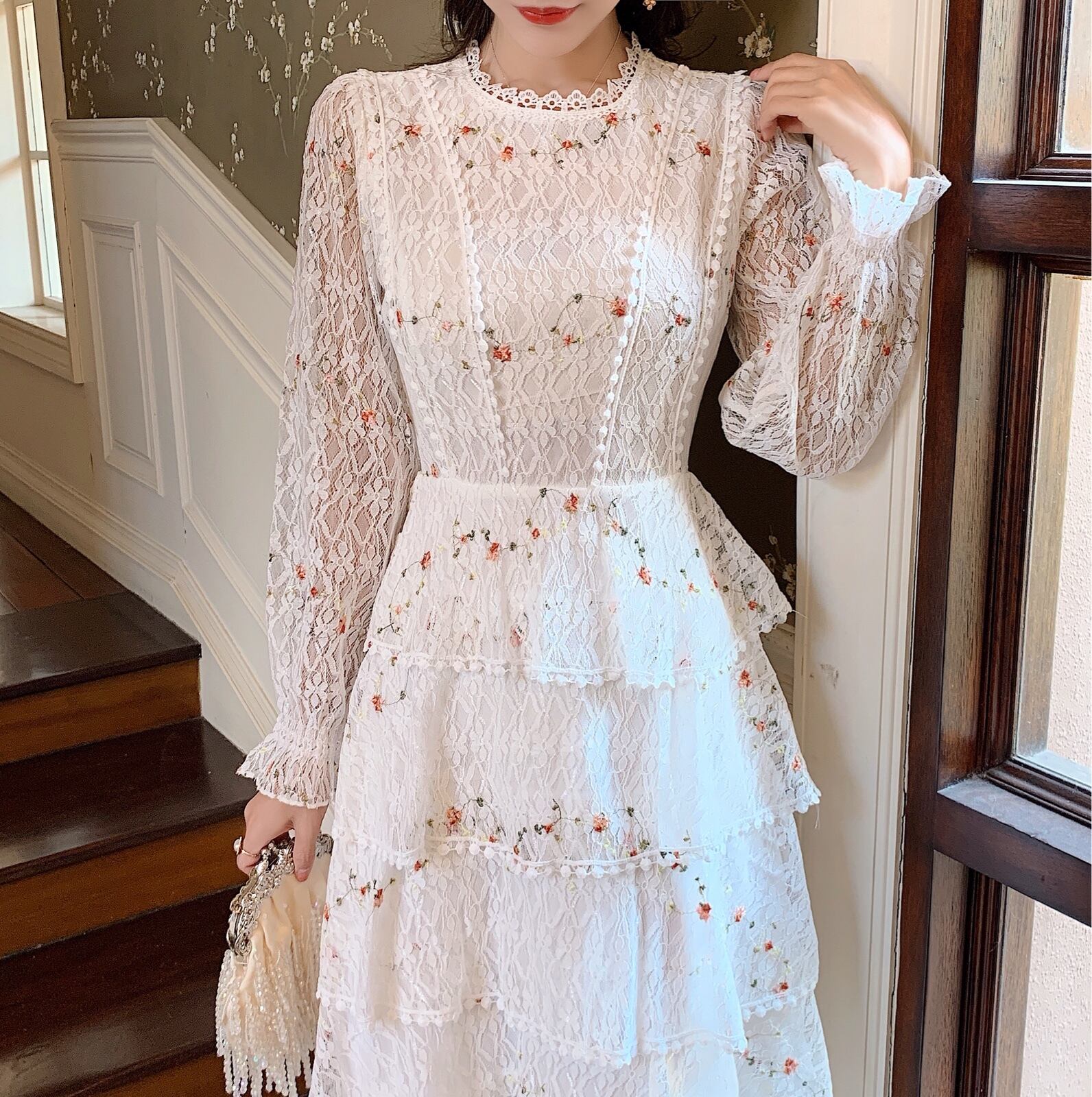 ティアードレースワンピース レースワンピース. レースドレス ハイウエスト 刺繍 ドレス ワンピース. 長袖 半袖 パーティー お呼ばれ 結婚式. 二次会. a3709