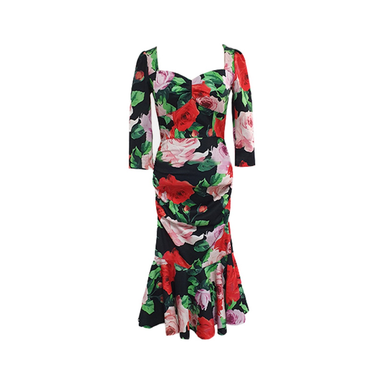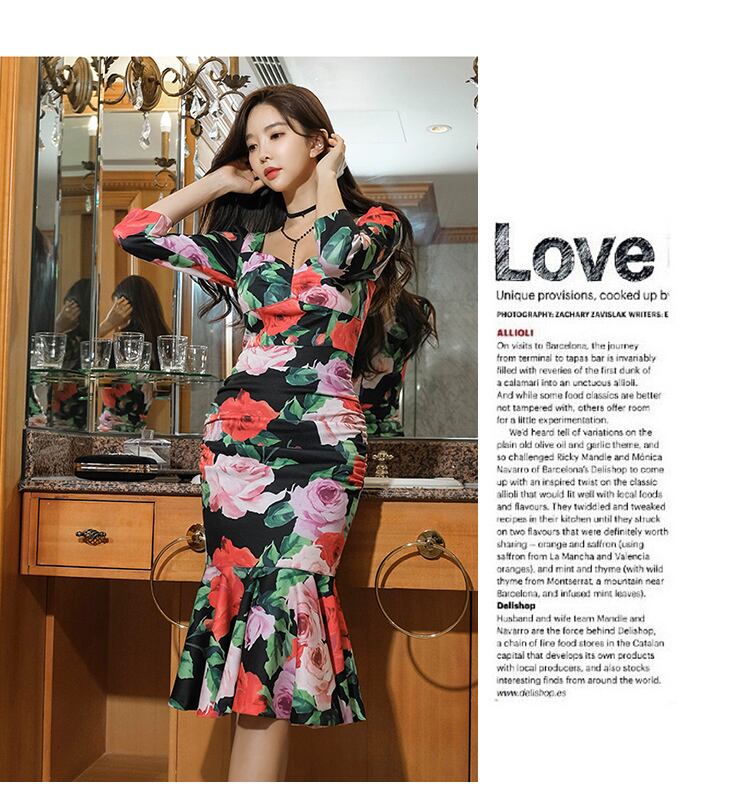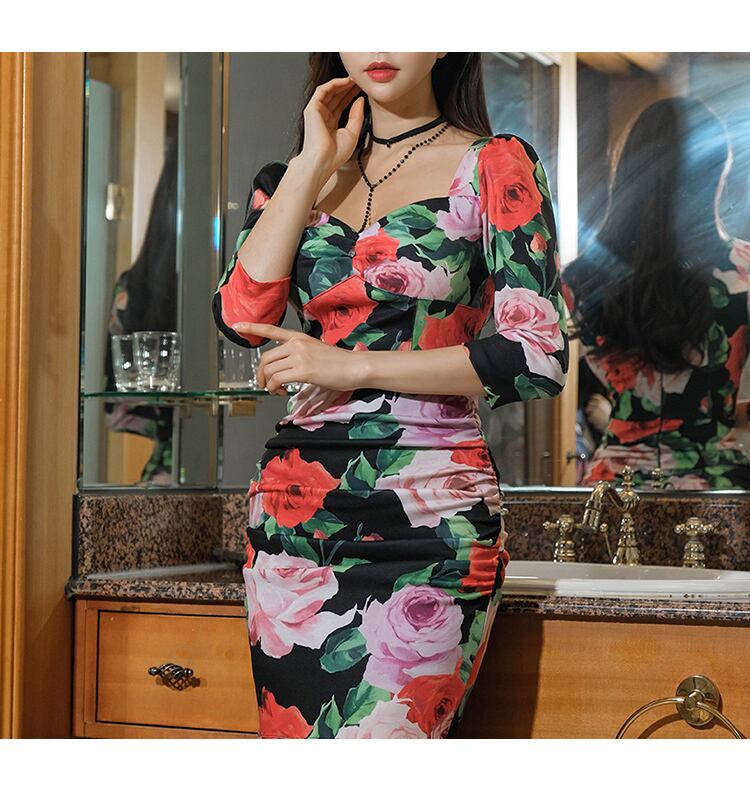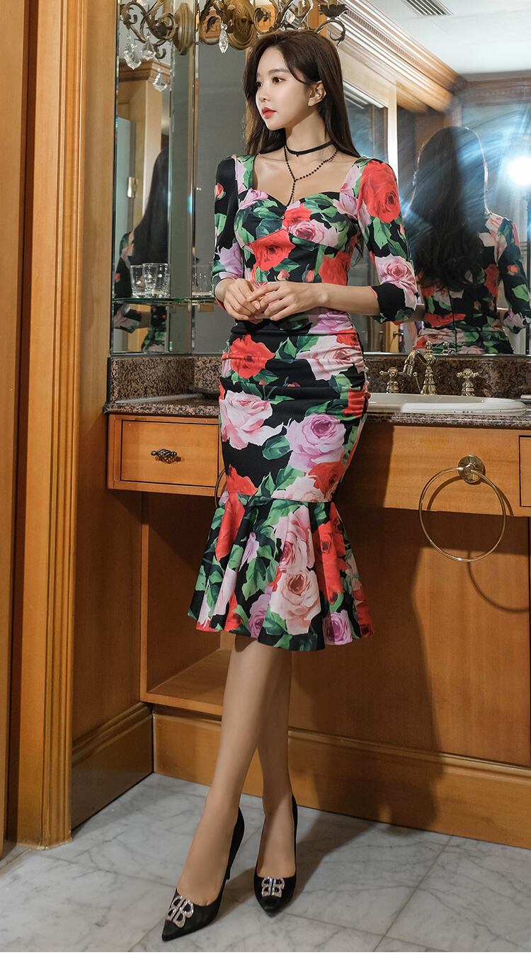 花柄マーメイドワンピース マーメイドドレス 花柄 タイトワンピース フィッシュテールスカート ミモレドレス レディース ナイトドレス パーディードレス セクシー. a3732