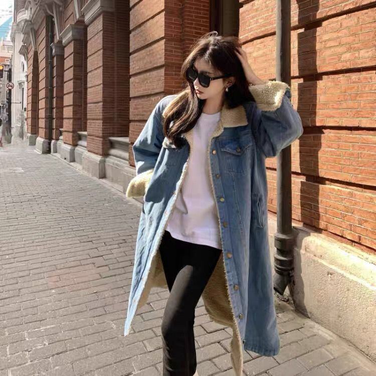 フェイクウールデニムジャケット デニムコート ベルベットコート オータムウィンター コットン 秋物 冬物 ファーレディース . a3739