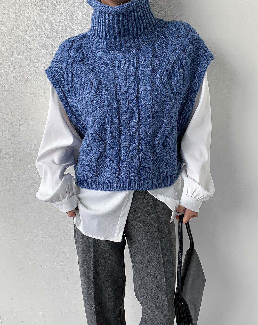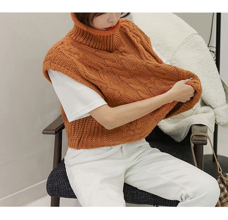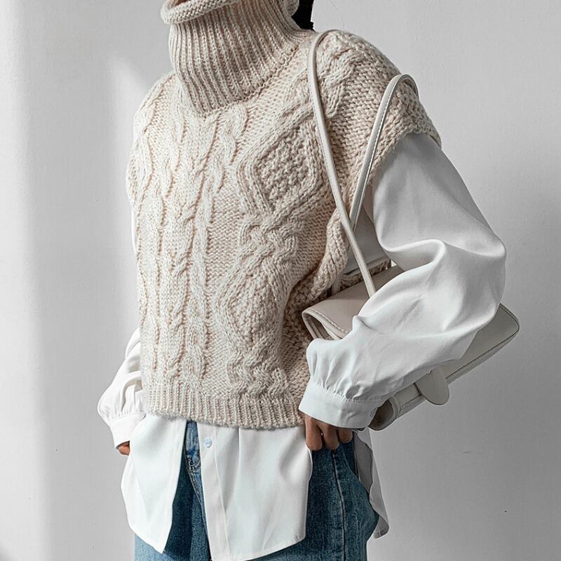 ケーブルニット ニットベスト セーターベスト ノースリーブ レディース アウターウェア 薄手 ニットベスト タートルネック ハイネック コンパクト丈 トップス 重ね着 4カラー. a3748