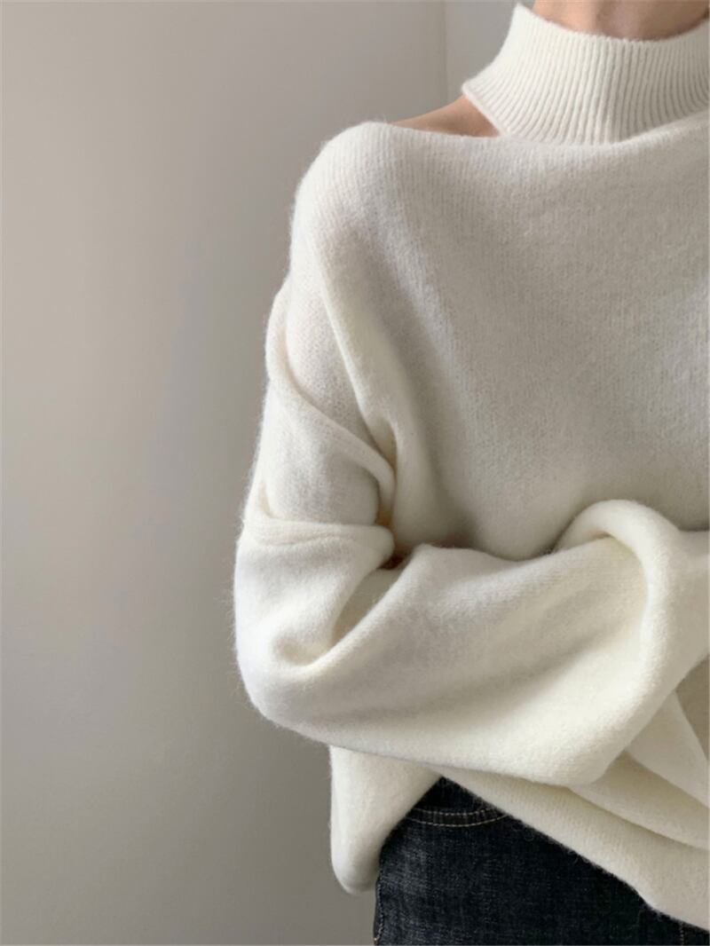 人気のショルダーカットのプルオーバーニット