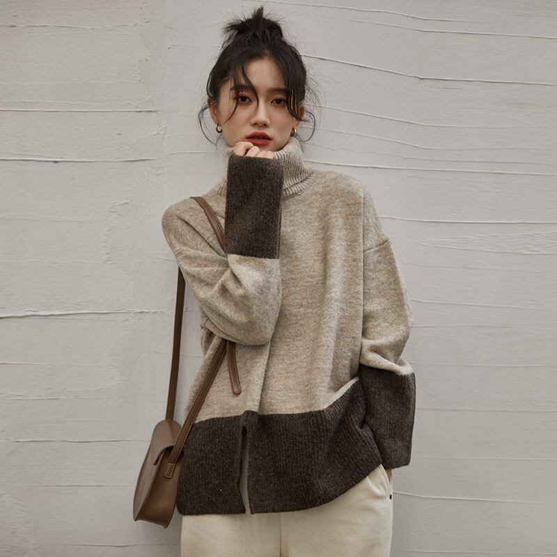 タートルネックニットセーター 裾スプリット セーター ニット トップス レディース 秋冬 カジュアル オフィス a3767
