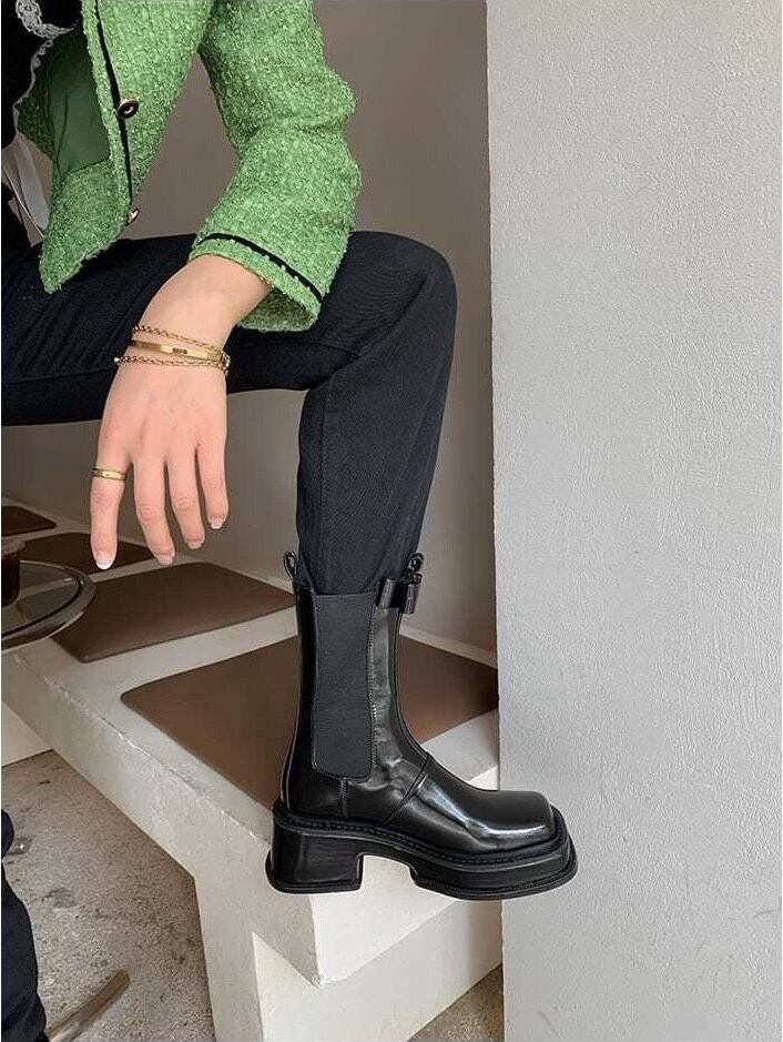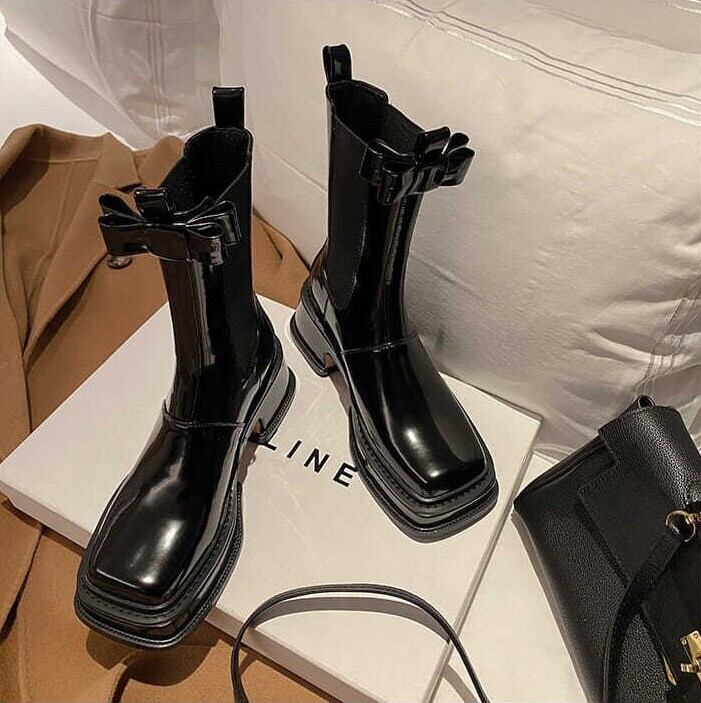マーティンブーツ レディース. カジュアル 厚底 切り替え チャンキーヒール ブーツ 靴 シューズ ミドルブーツ レディースブーツ pu 2カラー. a3763