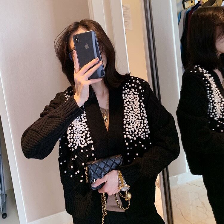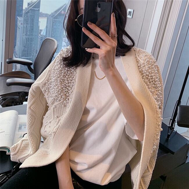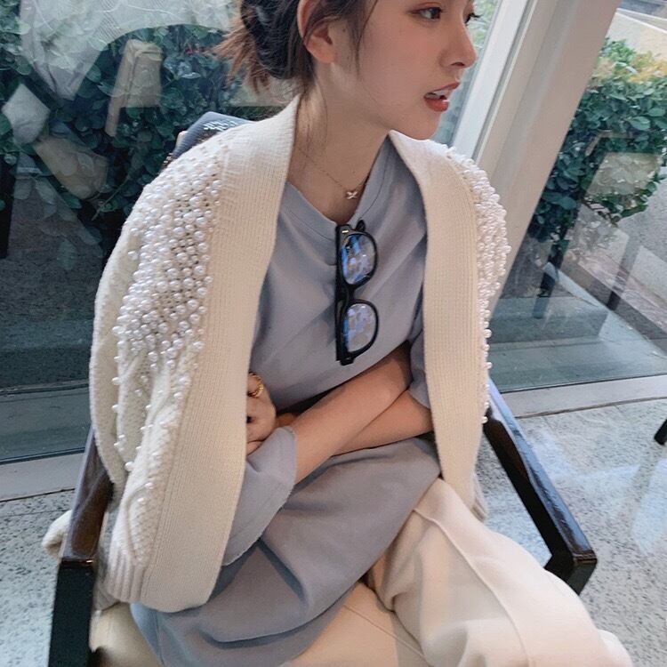 パールカーディガン ニットカーディガン セーター レディース カーディガン アウター 厚手 長袖カーディガン ジャケット Vネック.オフィス a3784