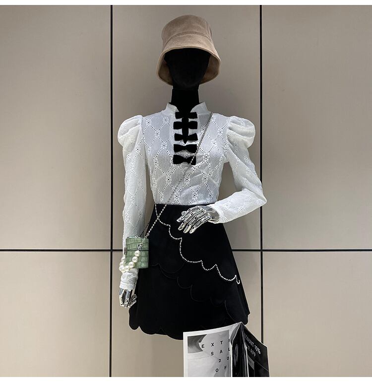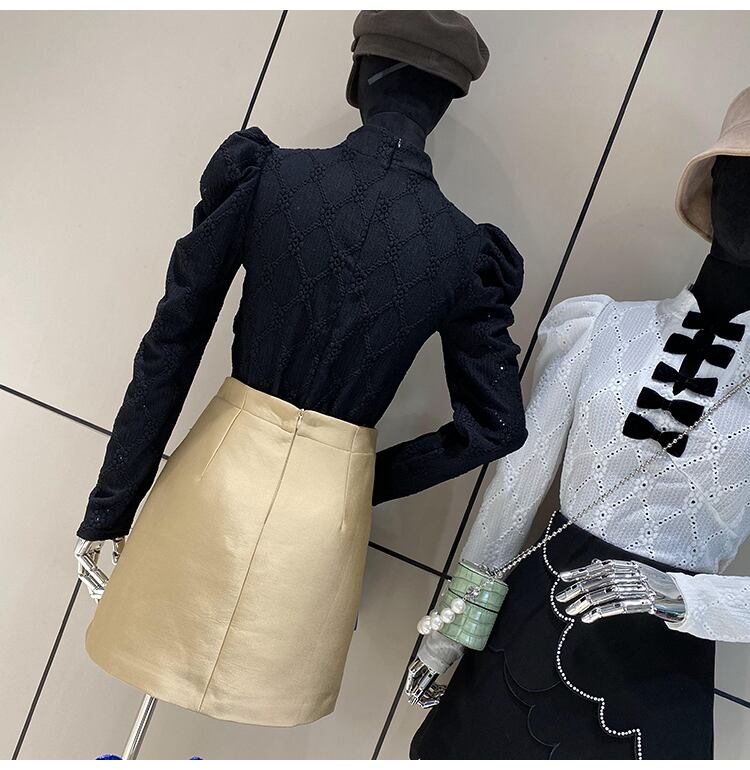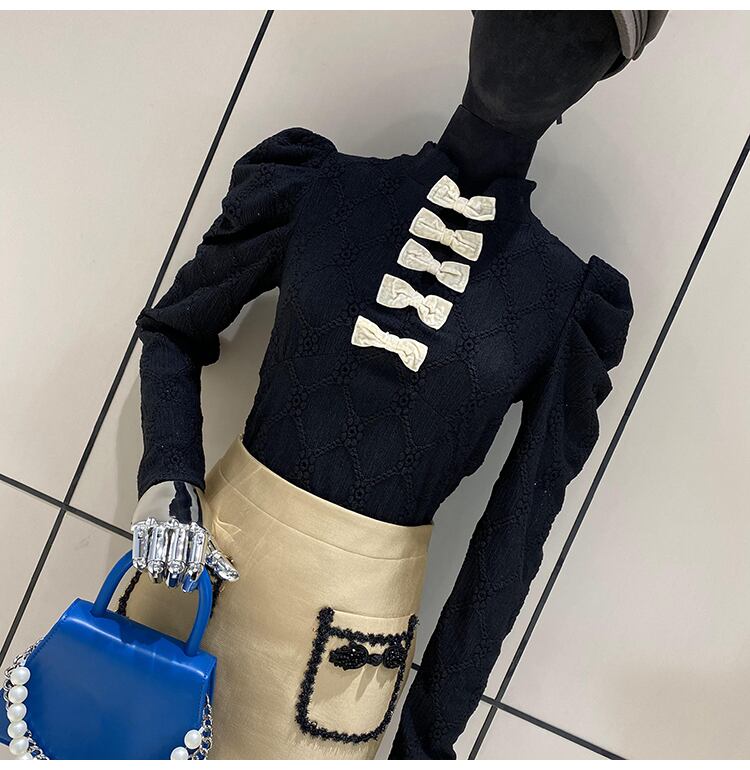 フレンチブラウス レーストップシャツ ブラウス シャツ トップス レディース 蝶結び 韓国 オフィス オシャレ 透かし彫り ジャカード. 3カラー. a3786