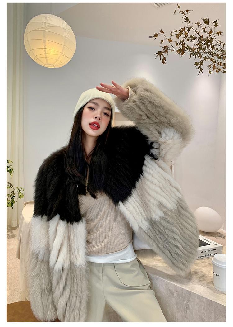 トリコロールカラー エコファーコート ファーコート 毛皮 ファージャケット ファー コート ジャケット アウター イミテーション 冬 a4161