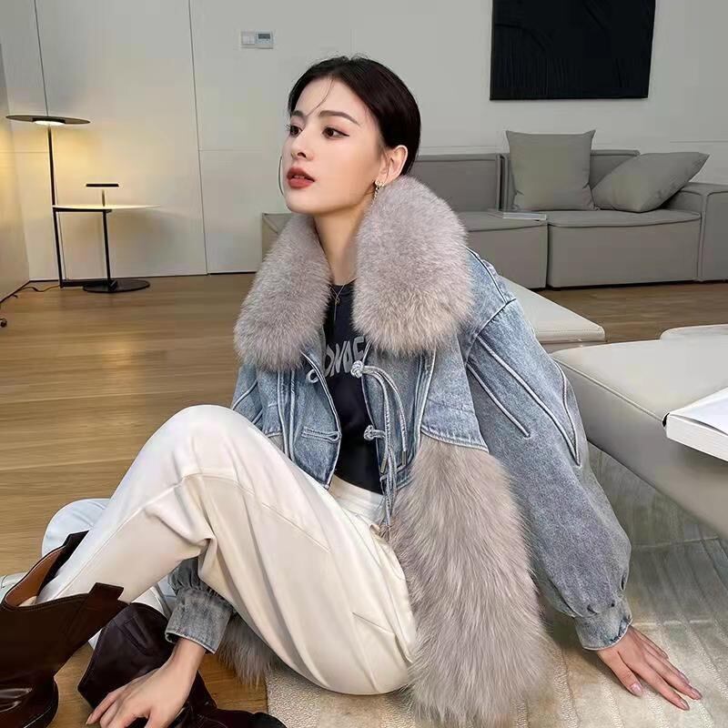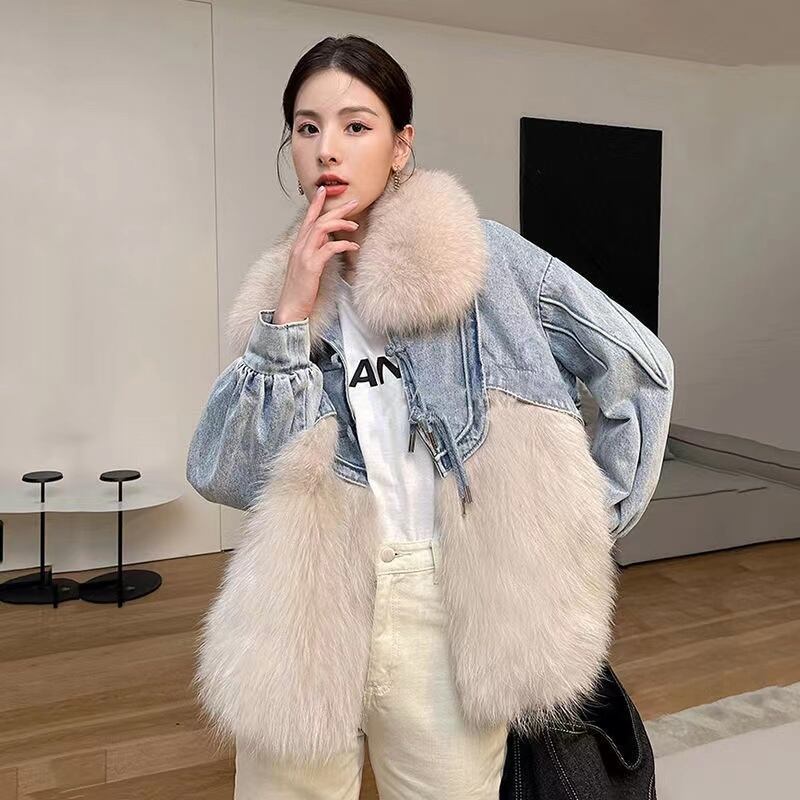 デニム&エコファードッキングデザインジャケット デニムジャケット ファーデニムジャケット ジャケット コート アウター 2カラー a4164