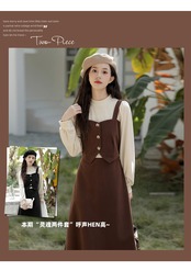フェイクツーピース ワンピース ドッキングワンピース ロングスカート レディース 秋冬 フレンチ a3791