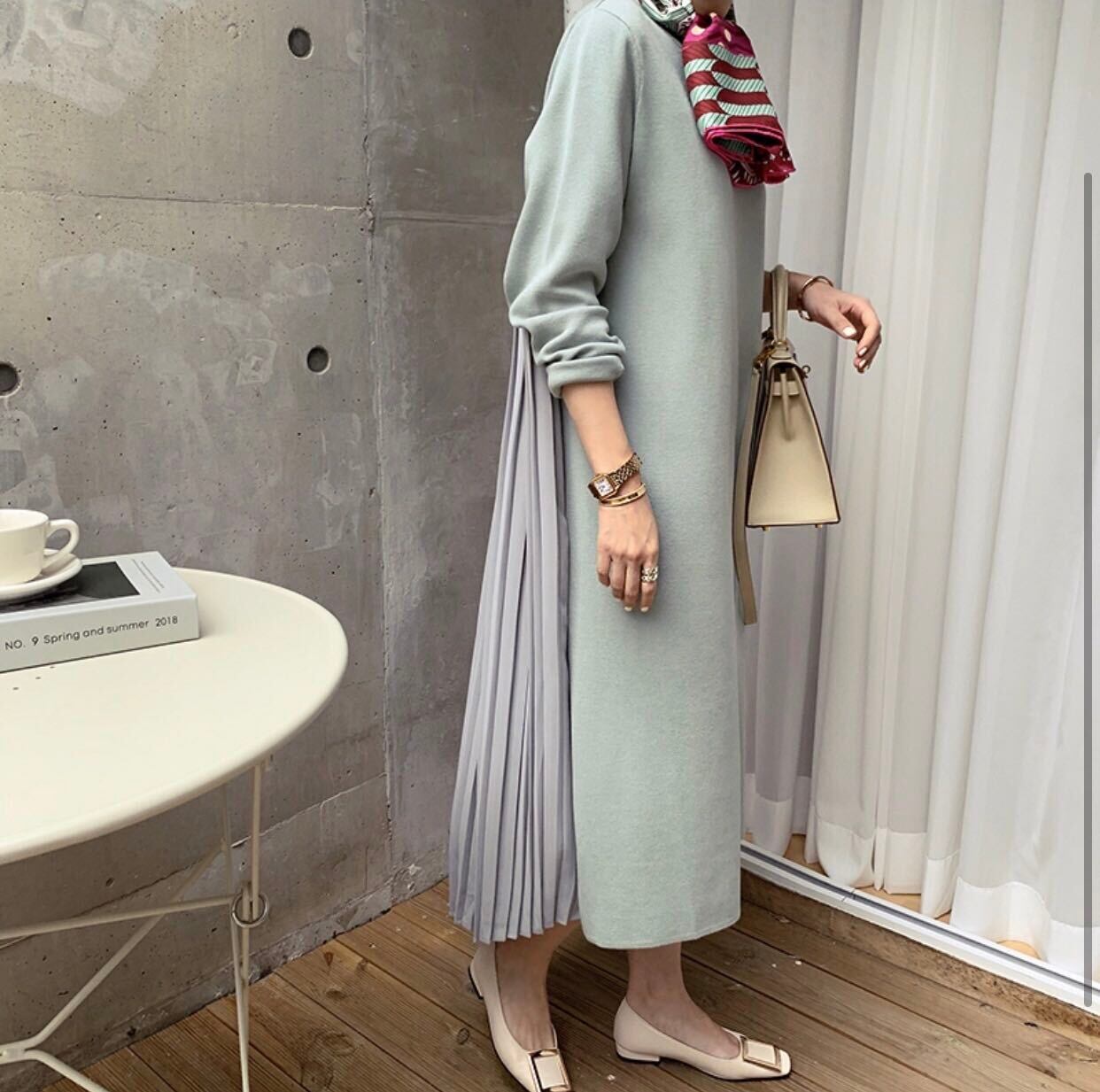 プリーツワンピース ロング 長袖 バックプリーツ ワンピース プリーツワンピ ロング丈ワンピース プリーツ レディース おしゃれ かわいい 上品 エレガント ロング丈ワンピ 秋 冬 a3774