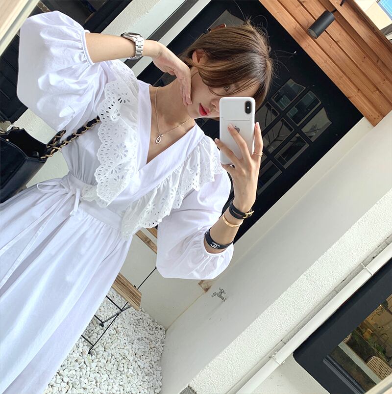 レースラップワンピース ラップワンピース フリルワンピース シャツワンピース ワンピース ドレス 韓国 レディース a3776