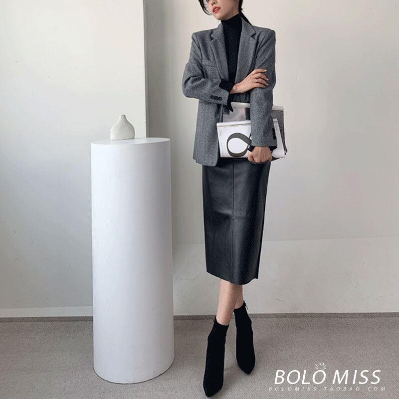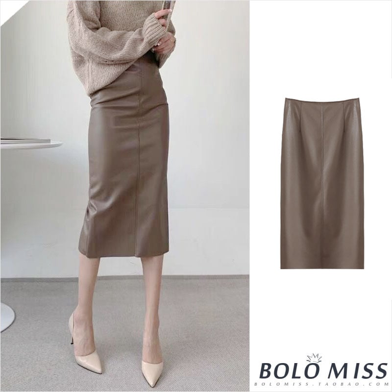 レザースカート PUレザー タイトスカート スカート ミドルスカート ハイウエスト スプリットスカート スリット レディース オフィスコーデ お仕事コーデ 2カラー a3798