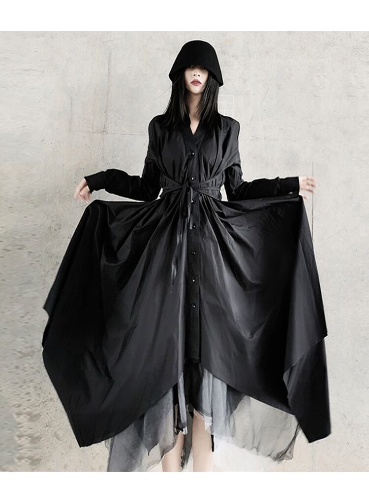 不規則シャツワンピース シャツワンピース メッシュスカート ワンピース スカート モード系. ブラックコーデ おしゃれ レディース a3799