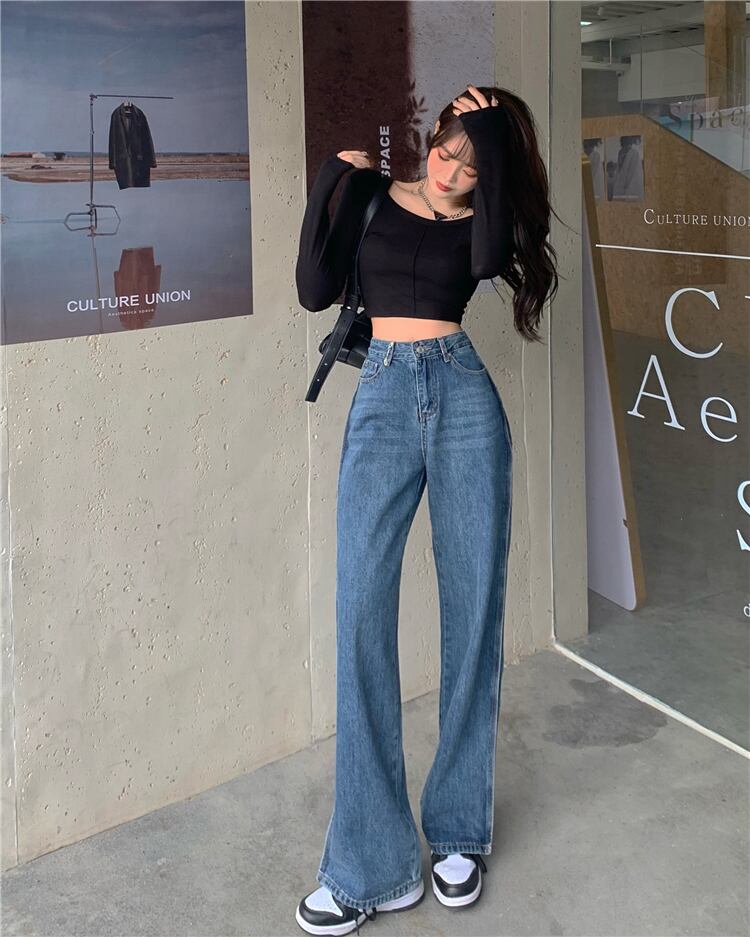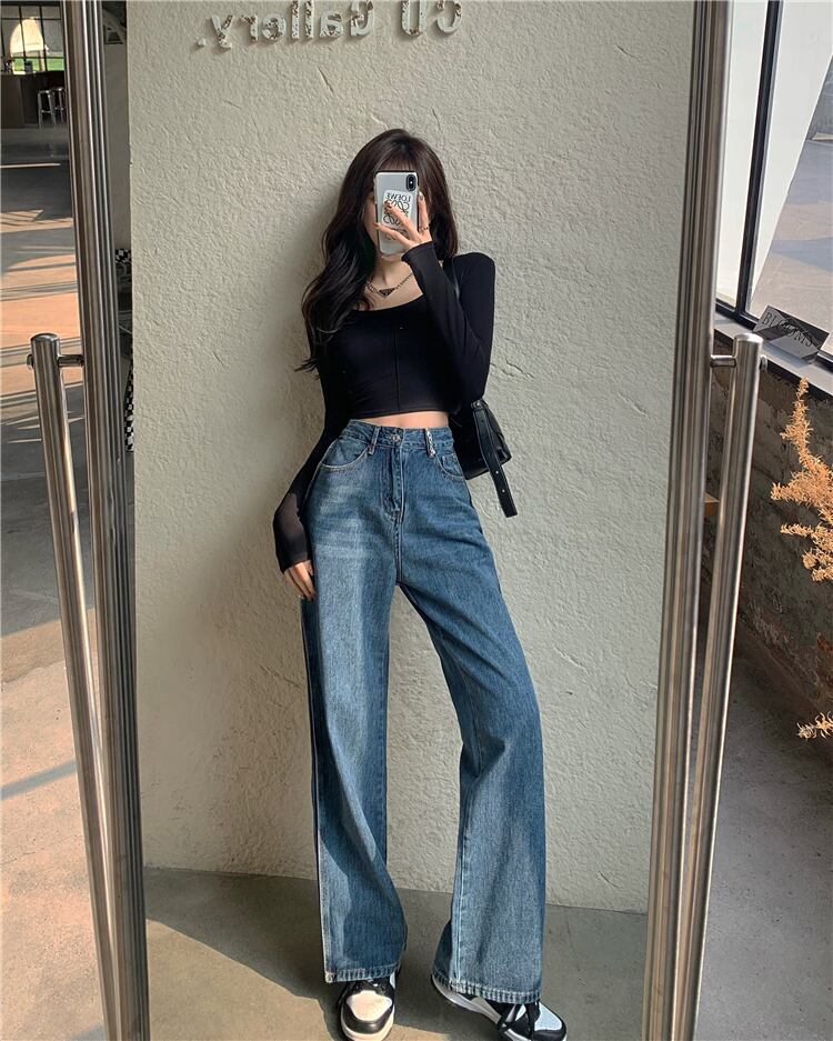 ストレートデニム ストレートジーンズ ハイウエスト デニム ジーンズ ワイドレッグパンツ レディース ロングパンツ レディースパンツ カジュアル a3812