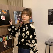 立体フラワーニットカーディガン ニットカーディガン カーディガン 刺繍カーディガン 花モチーフニットカーディガン 2カラー a3816
