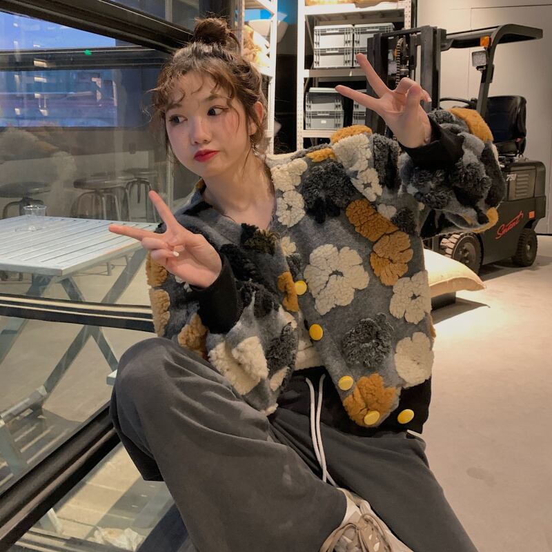 立体フラワーボアニットカーディガン ニットカーディガン カーディガン 刺繍カーディガン 花モチーフニットカーディガン a3817