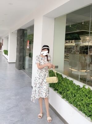 フレンチスタイルの大人可愛いドット柄ワンピース