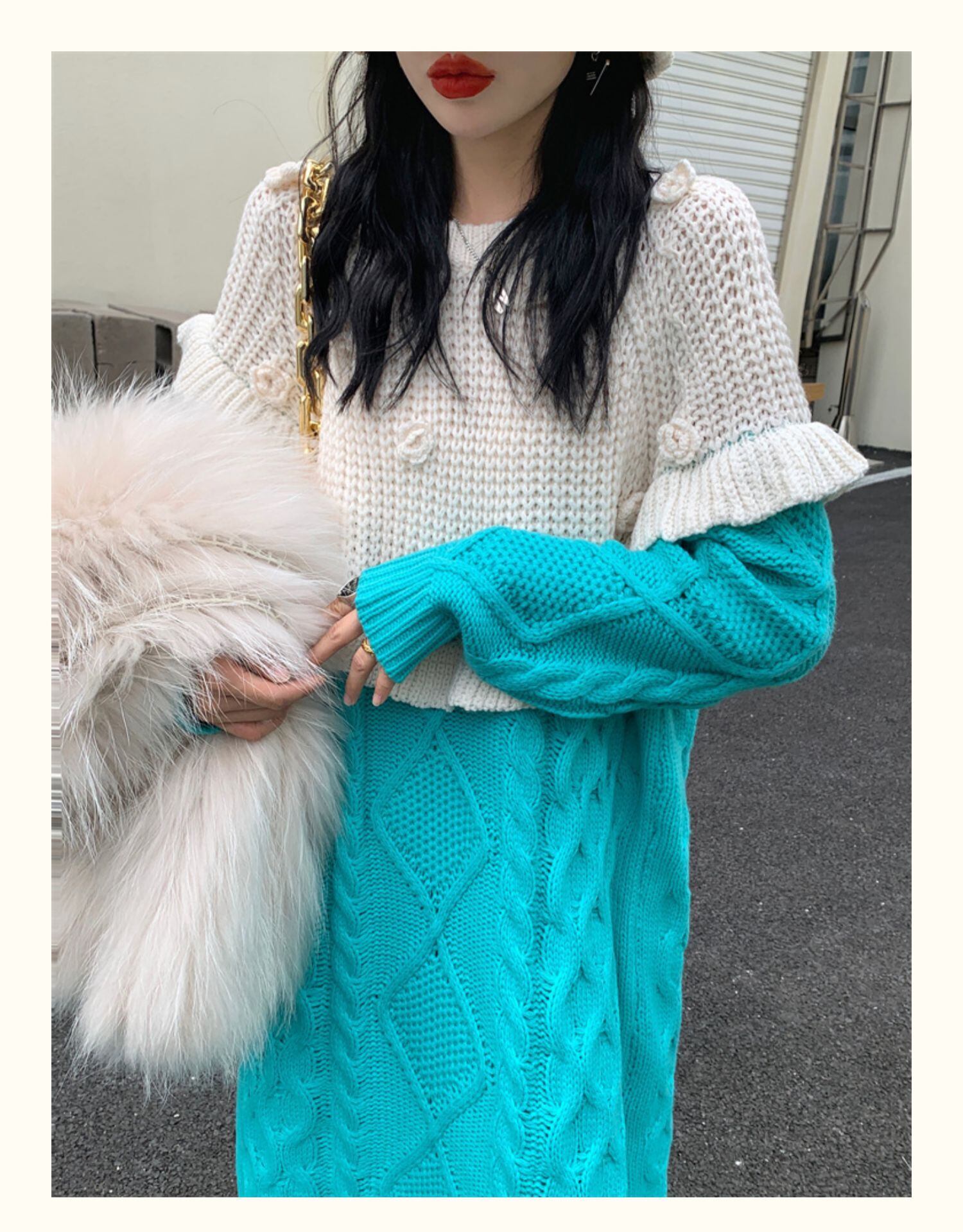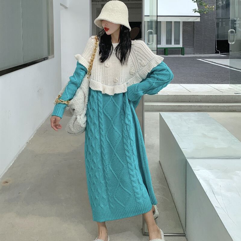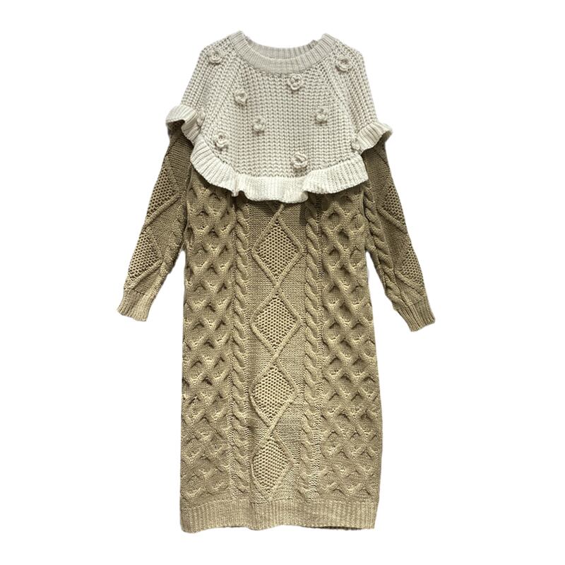 【日本未発売】ツイストニットワンピース ニットワンピース 異素材ワンピ 長袖 ニット ワンピース ロングセーター ストリート カジュアル 3カラー a3801