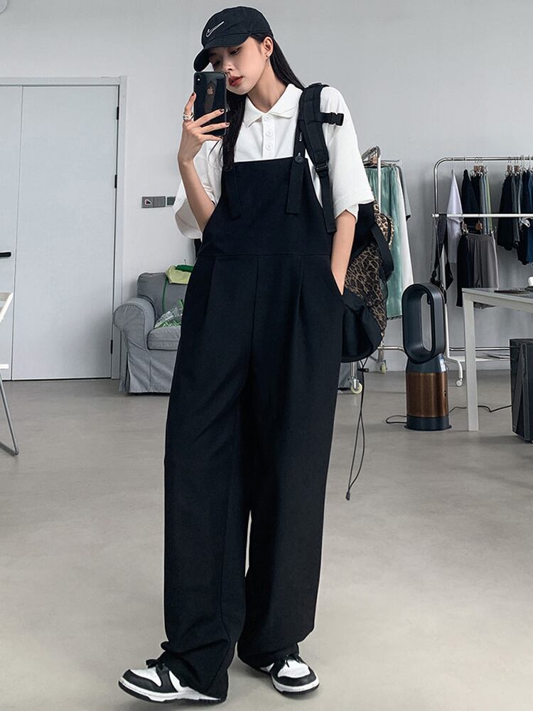 オーバーオール ルーズ レディース パンツ カジュアル ワンピース ワイドレッグスーツパンツ a3874