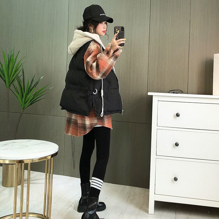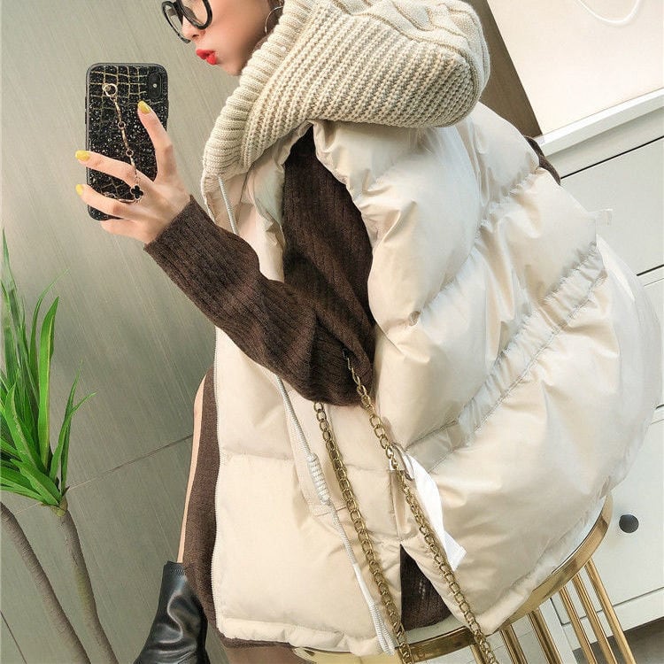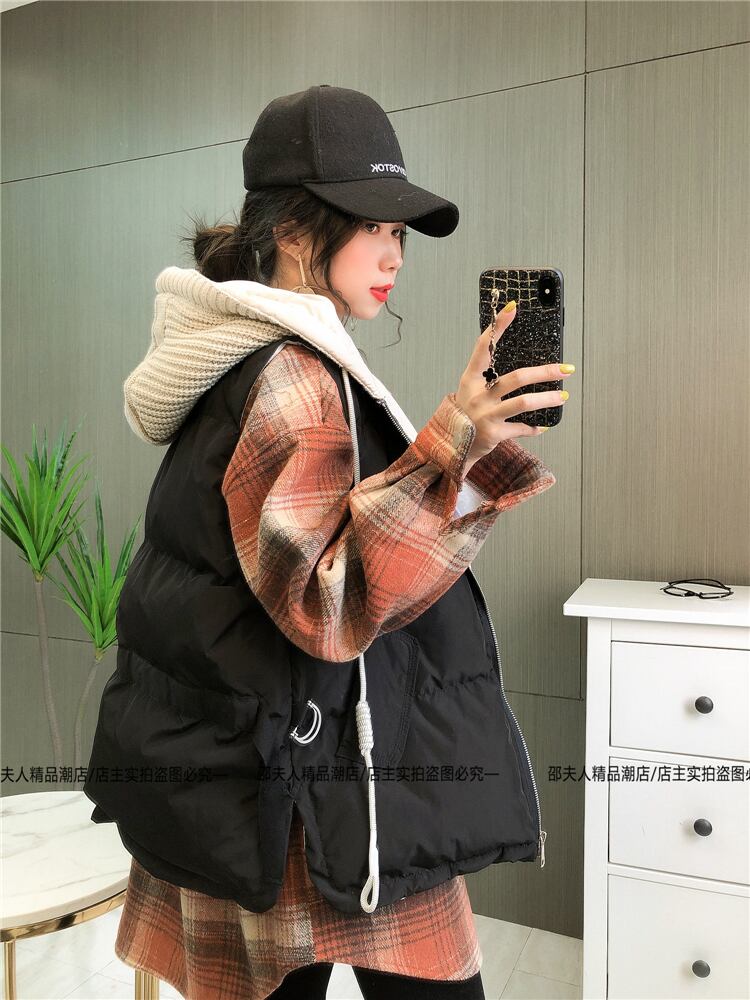 フード付きコットンベスト ニットベスト コットンベスト ベスト チョッキ 秋冬 アウターウェア レディース 2カラー a3879
