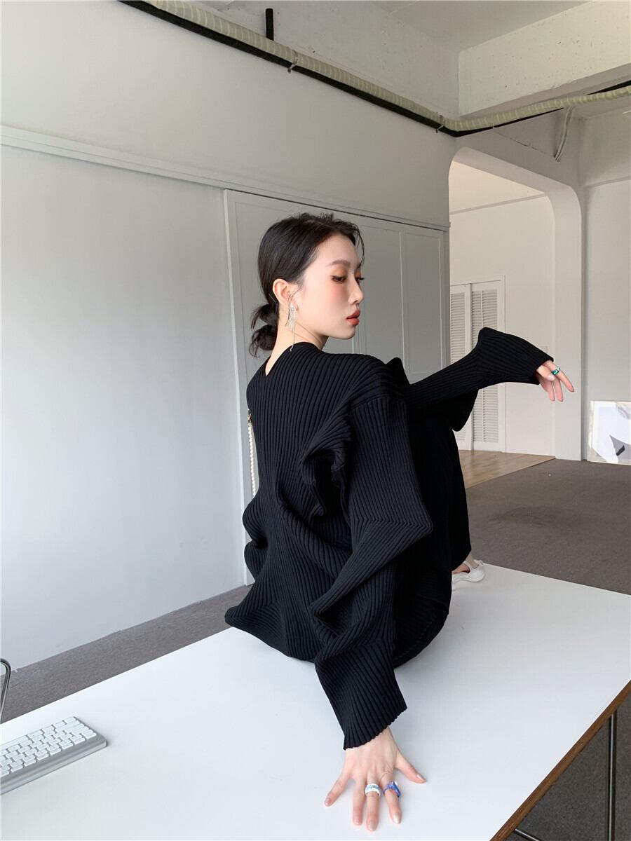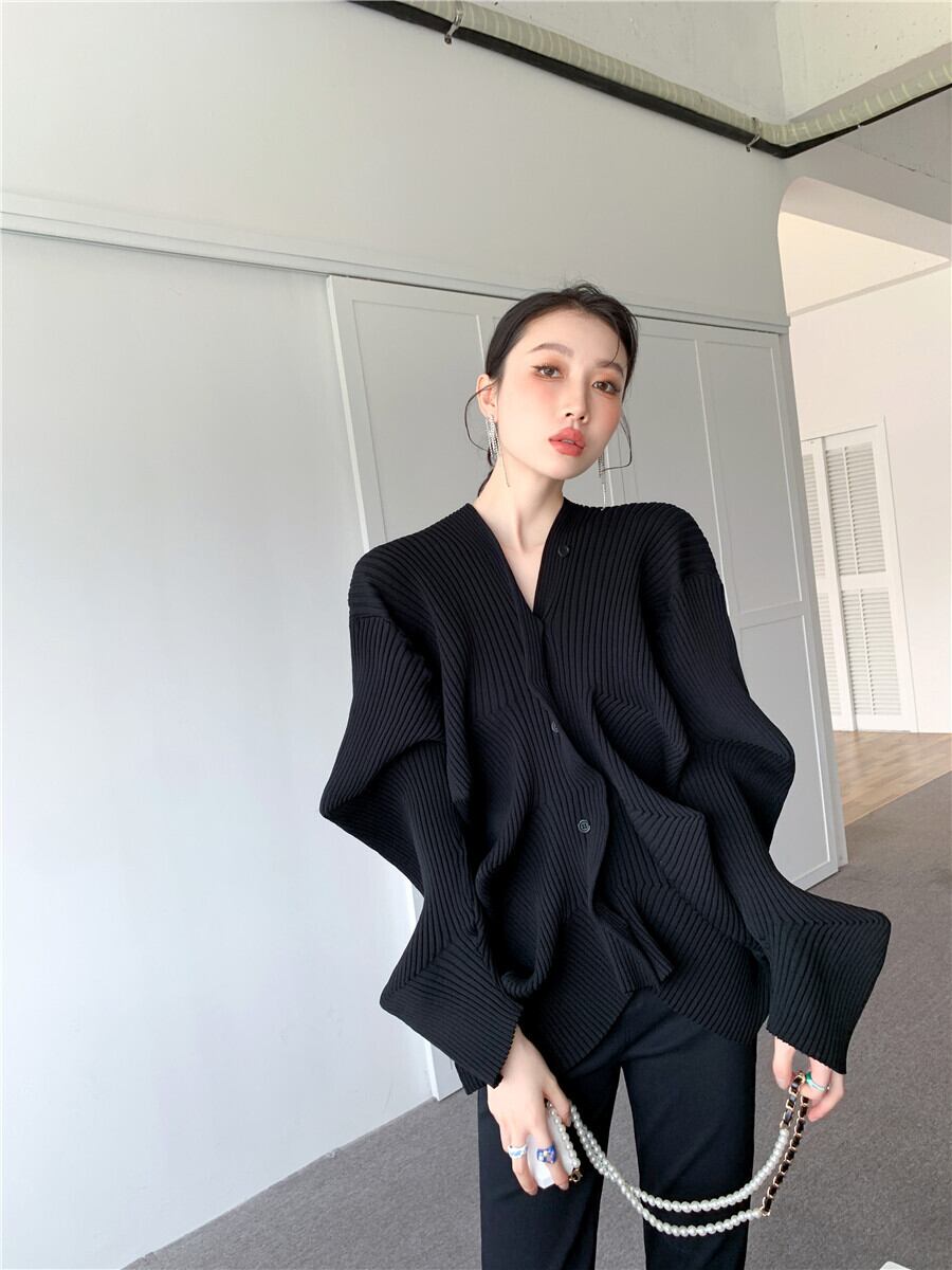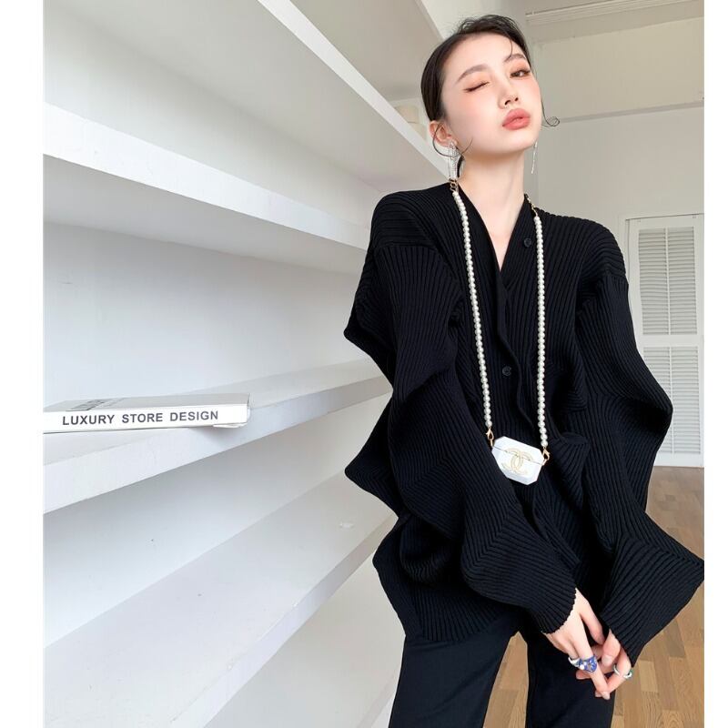 ウェーブのようなドレープがハイデザインのカーディガン