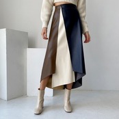 【バラ売り】不規則スカート コントラストカラーステッチ Aラインスカート プルオーバーショートニットセーター ハイネック ハイウエスト ニット セーター a3881