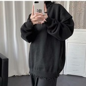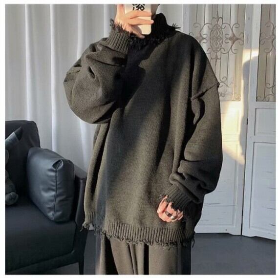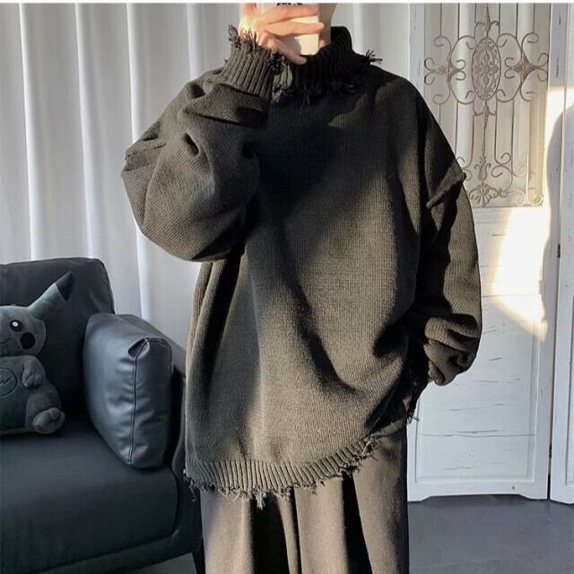 ダメージ加工 オーバーサイズ ニット メンズ レディース兼用 エッジニットセーター プルオーバー 無地 タートルネック セーター ニット トップス. レディース ストリート 2カラー a3883